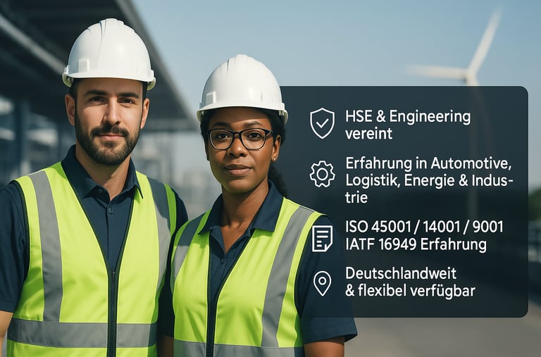 Wir entwickeln praxisorientierte HSE-Konzepte für Industrie & Bau – inklusive Risikoanalysen, Managementsystemen und ISO-Vorbereitungen.